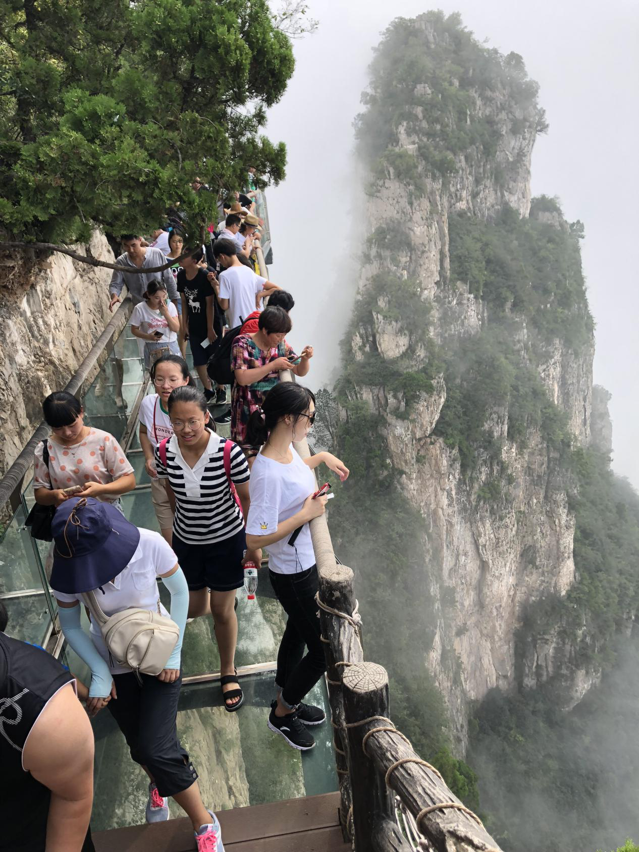 根據行程安排,大家先后游覽了“華夏第一秀水”小寨溝、“華夏第一奇峽”紅石峽,以“三步一泉,五步一瀑,十步一潭”而著稱的老潭溝及野生獼猴保護區獼猴谷,第二天大家去感受萬丈凌空的驚險、欣賞群峰林立的美景--云臺山玻璃棧道,并登上千階的云梯棧道——海拔1308米的茱萸峰頂,途中坐車經過了14個疊彩洞,當天早上霧氣彌漫,體驗了前所未有的云中乘車。迷人的自然風光讓大家流連忘返。