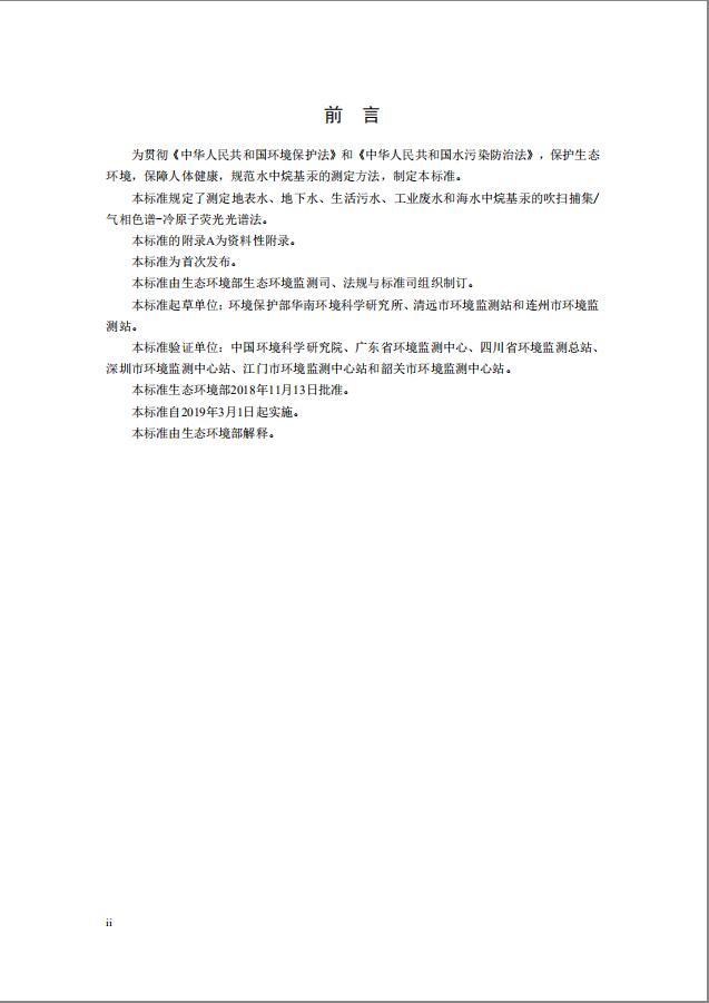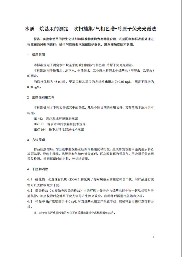 本標(biāo)準(zhǔn)規(guī)定了地表水測(cè)定地下水測(cè)定、生活污水檢測(cè)、工業(yè)廢水檢測(cè)和海水中烷基汞的吹掃捕集/氣相色譜-冷原子熒光光譜法。本標(biāo)準(zhǔn)的附錄A為資料性附錄。 本標(biāo)準(zhǔn)為首次發(fā)布。